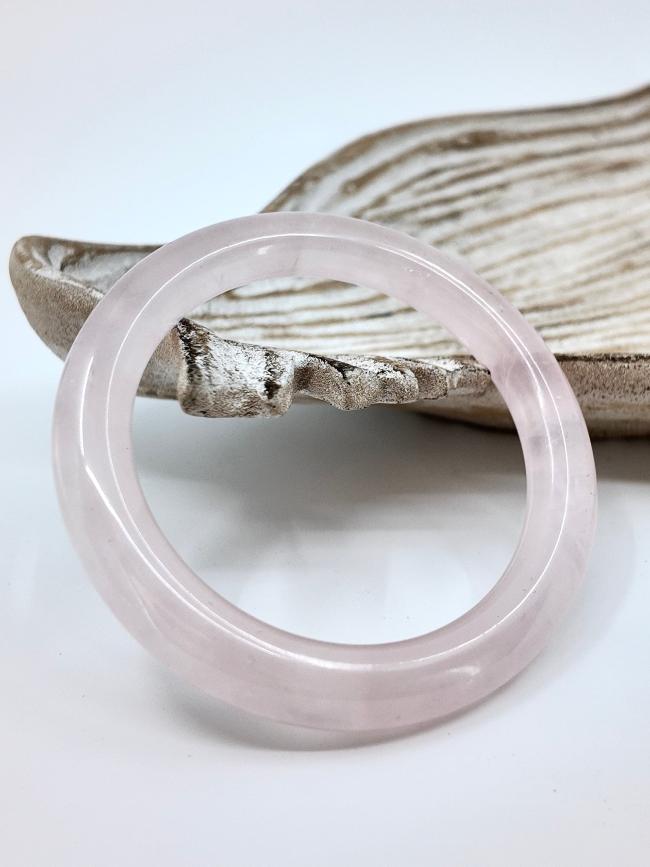 Wearing a rose quartz bangle graces your daily life with the soft yet potent energies of love, compassion, and emotional renewal.