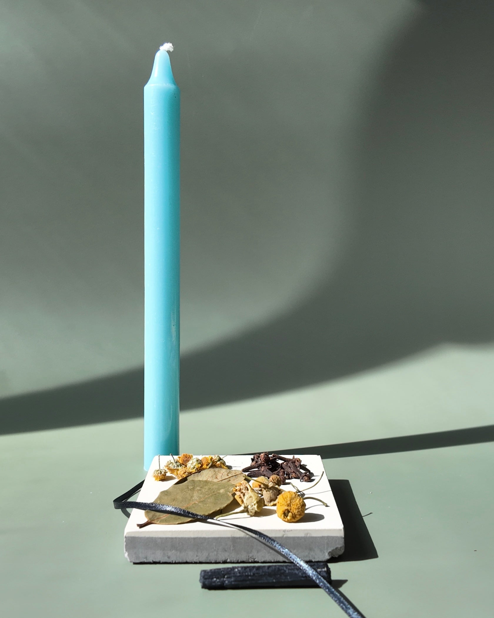 - Blue candle (black to absorb negativity, blue to promote truth and peace)
